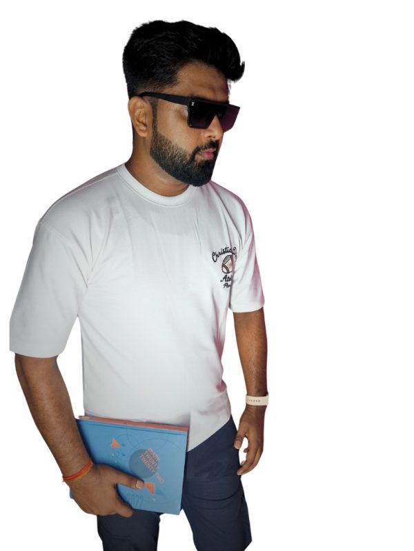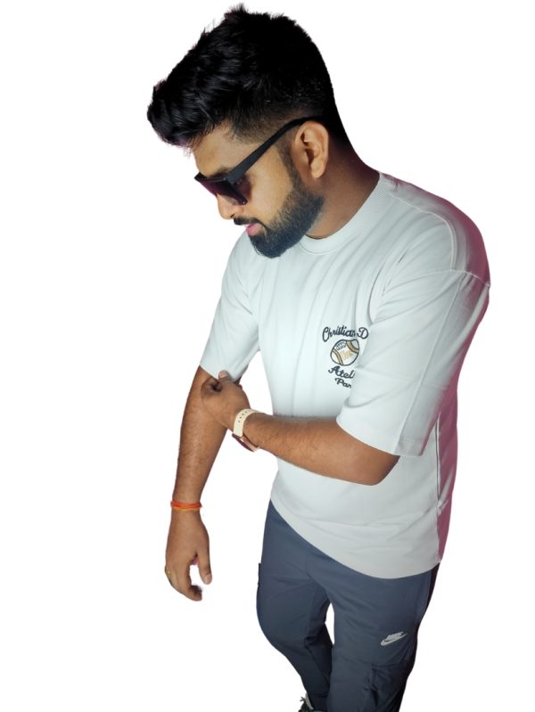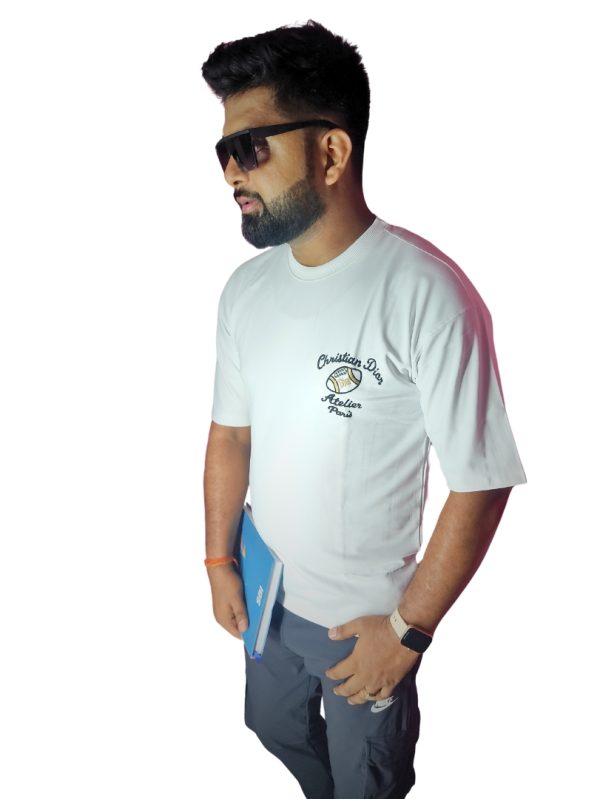Perfect blend of style and comfort with our Unisex white Printed T-Shirt. Designed for both men and women, this T-shirt features a modern round neck and trendy down shoulder sleeves that offer a relaxed fit and a casual look. The bold black canvas is adorned with a distinctive print, making it a versatile addition to any wardrobe.